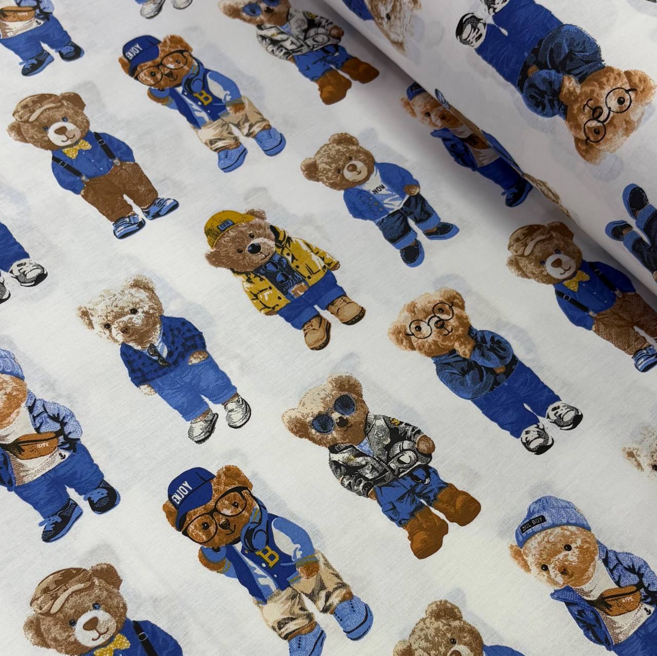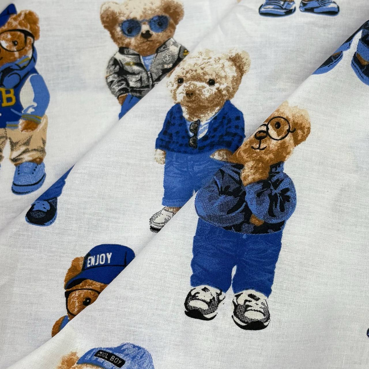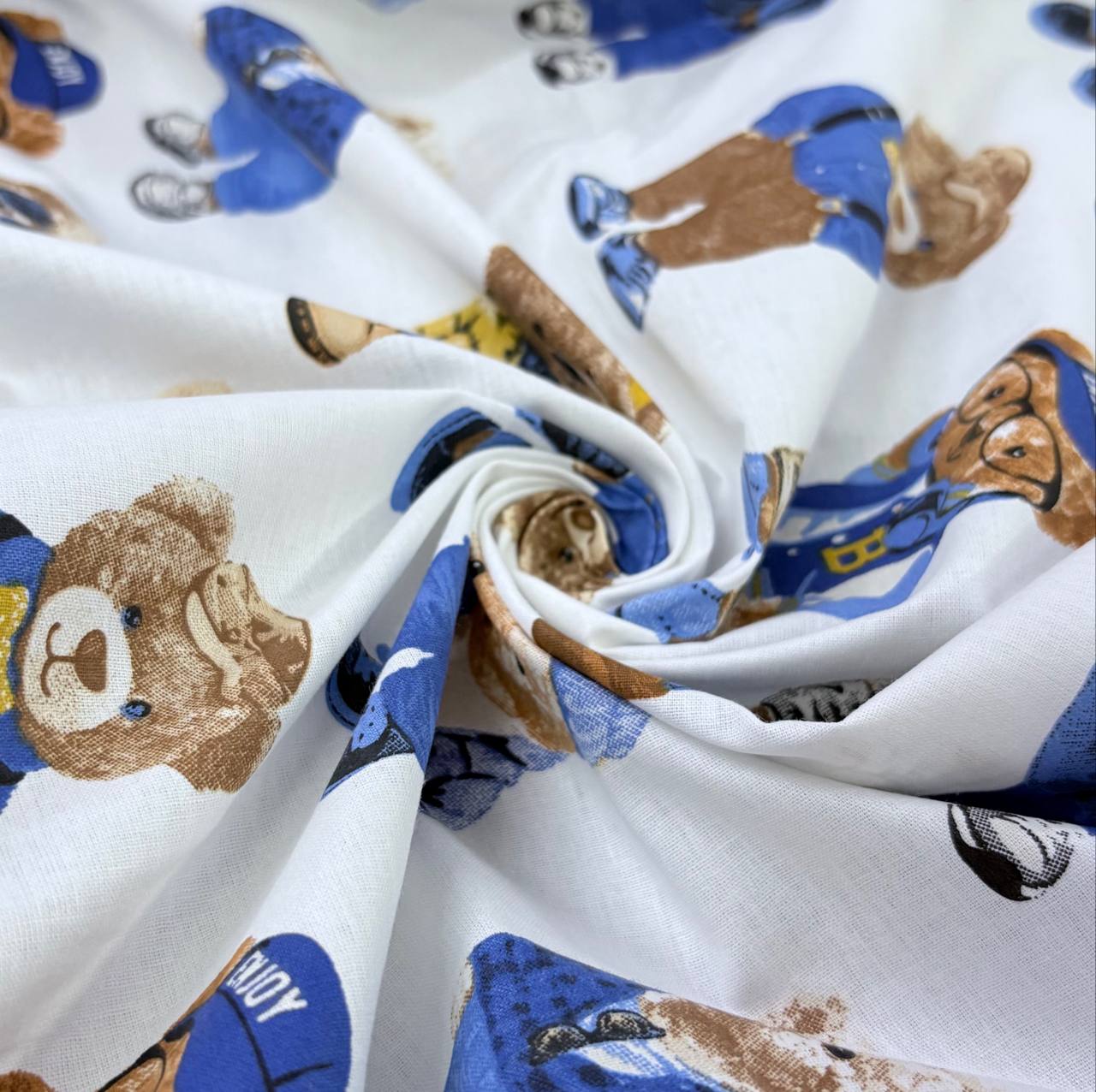 בד כותנה רוחב 2.40 דובים חום כחול