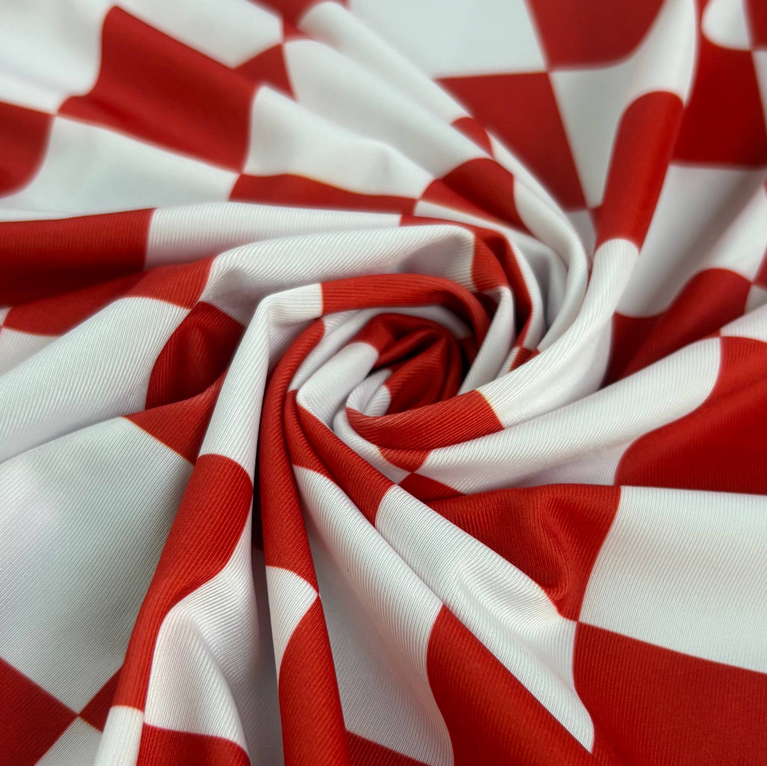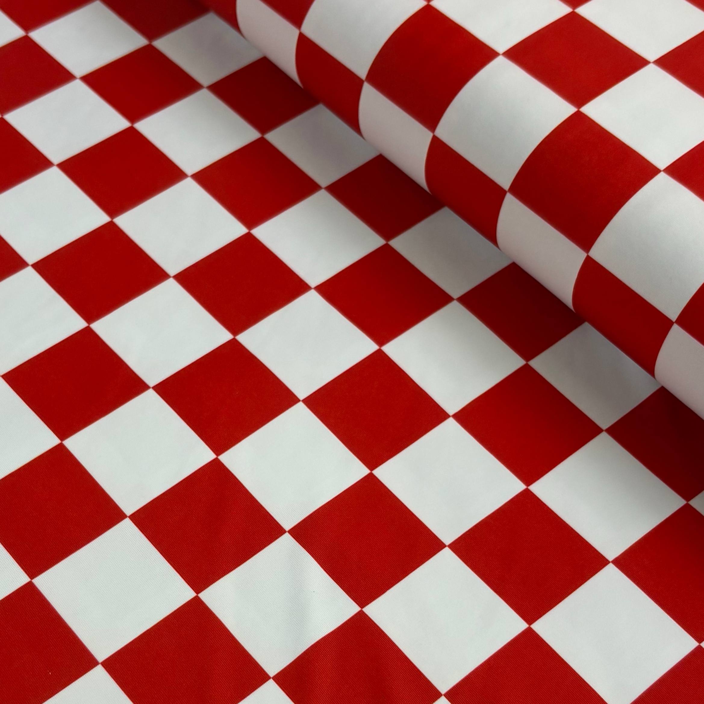 בד לייקרה משבצות אדום לבן