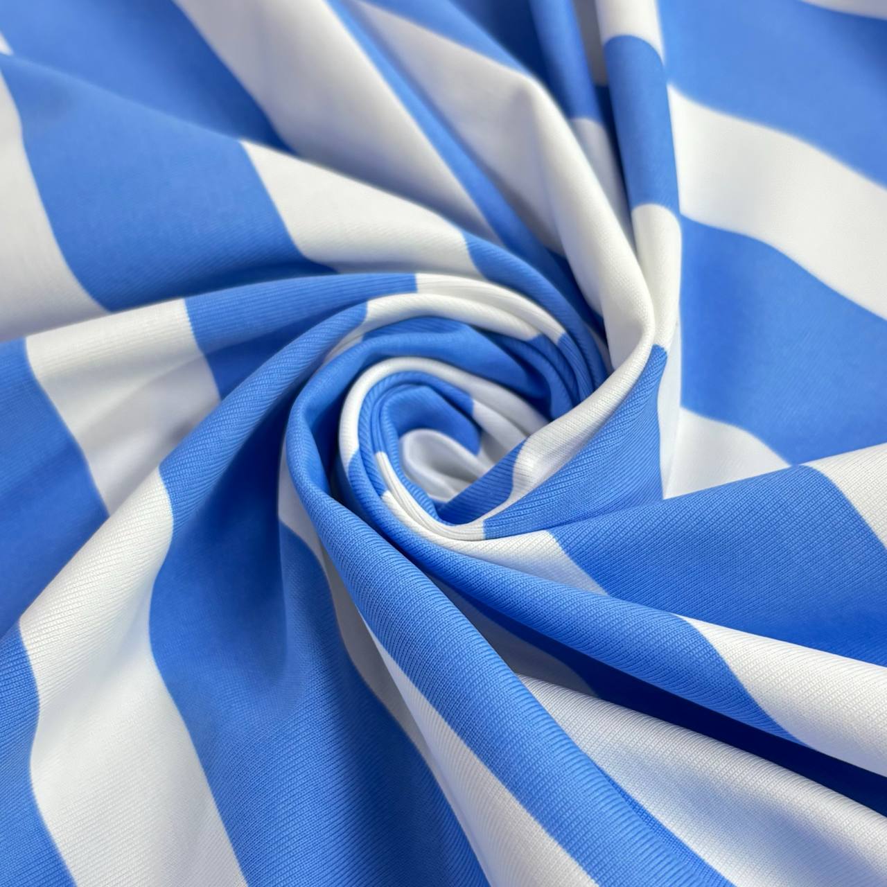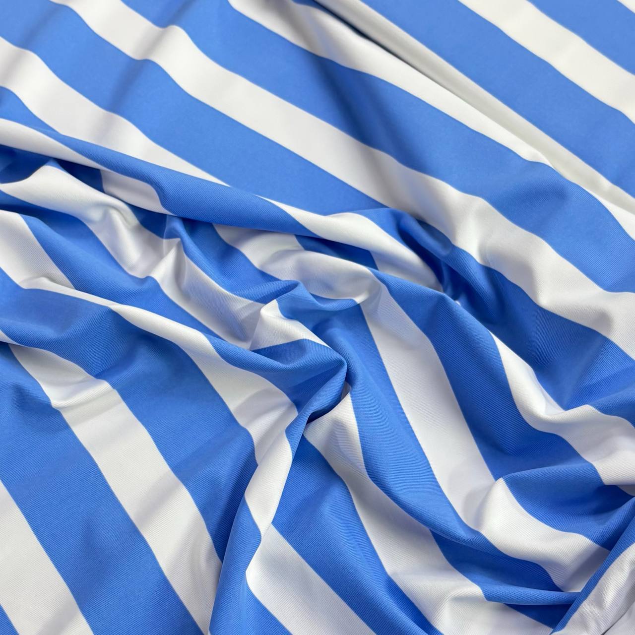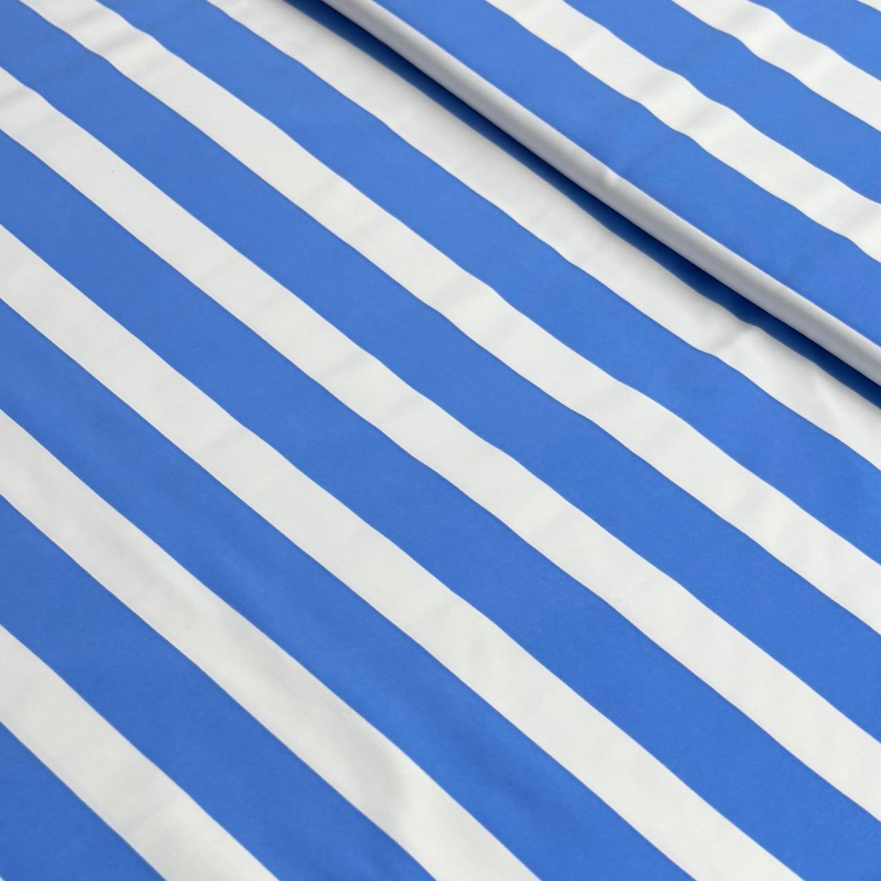 בד לייקרה פסים תכלת לבן