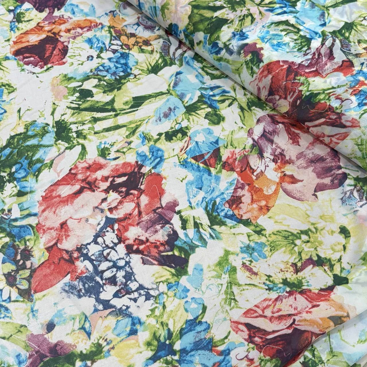 הדפס פרחים גדולים צבעוניים על רקע בהירה לבן חלבי