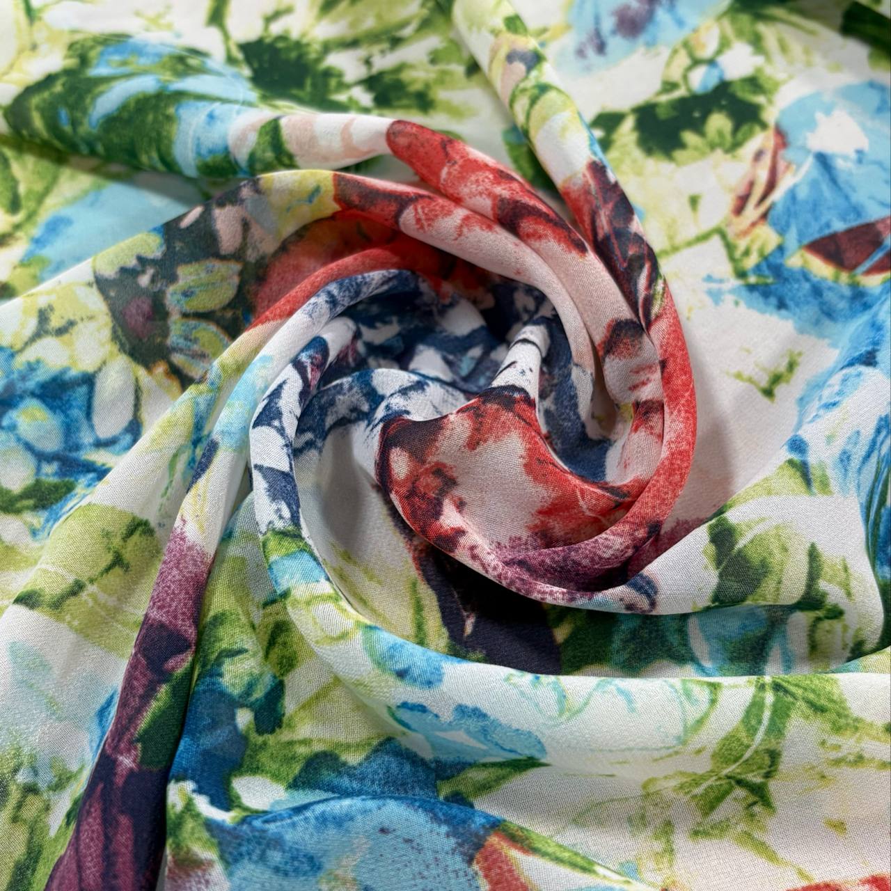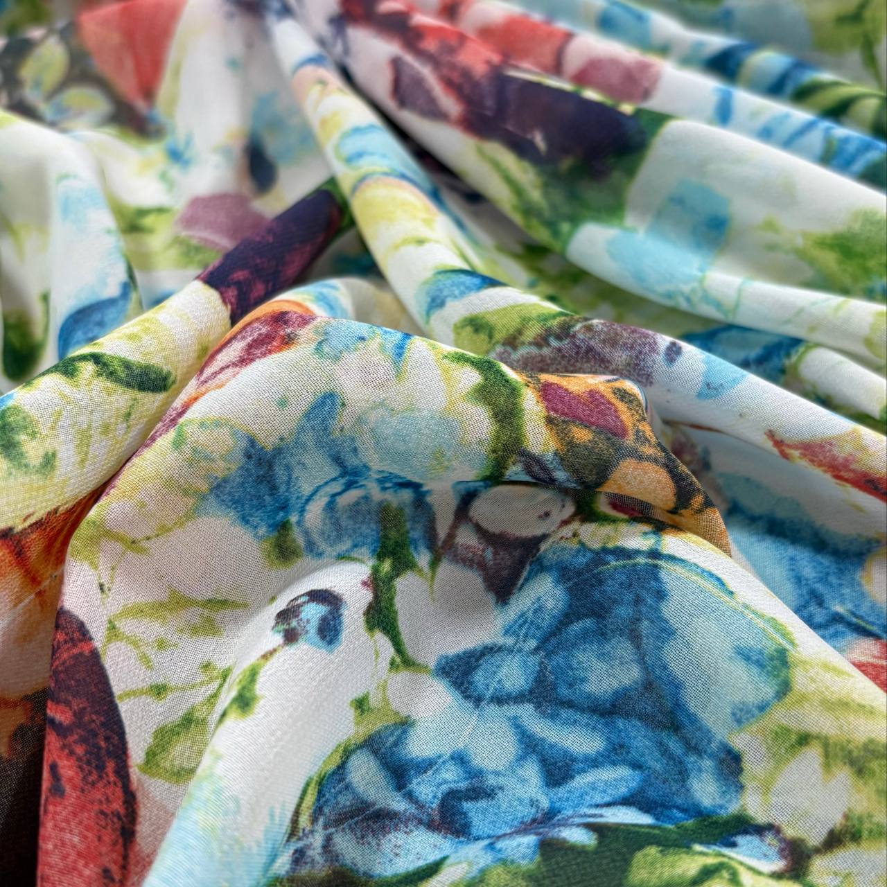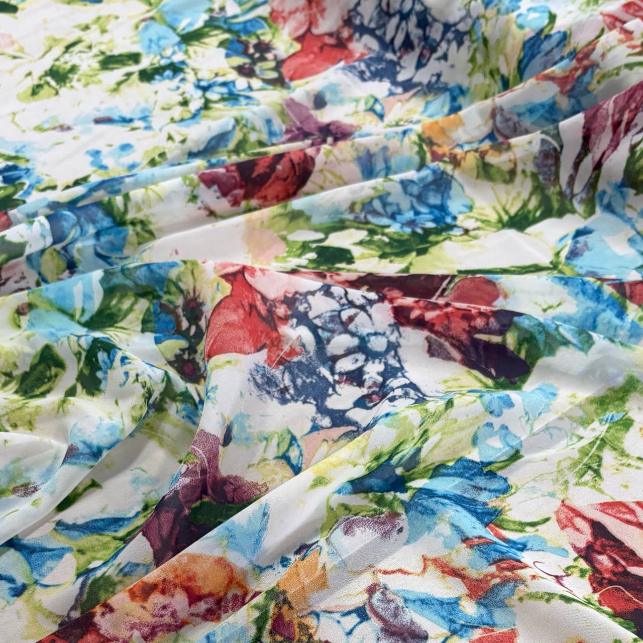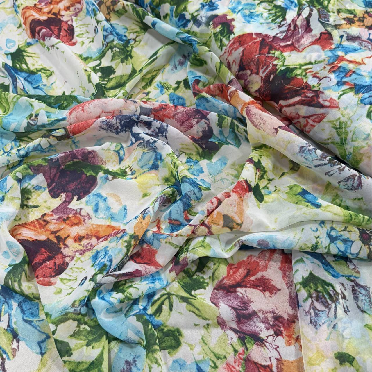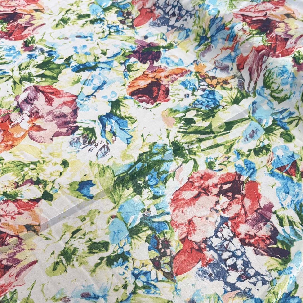בד שיפון פרחים גדולים לבן