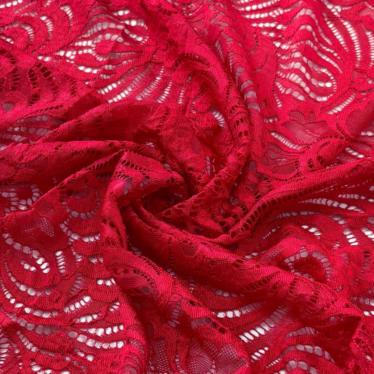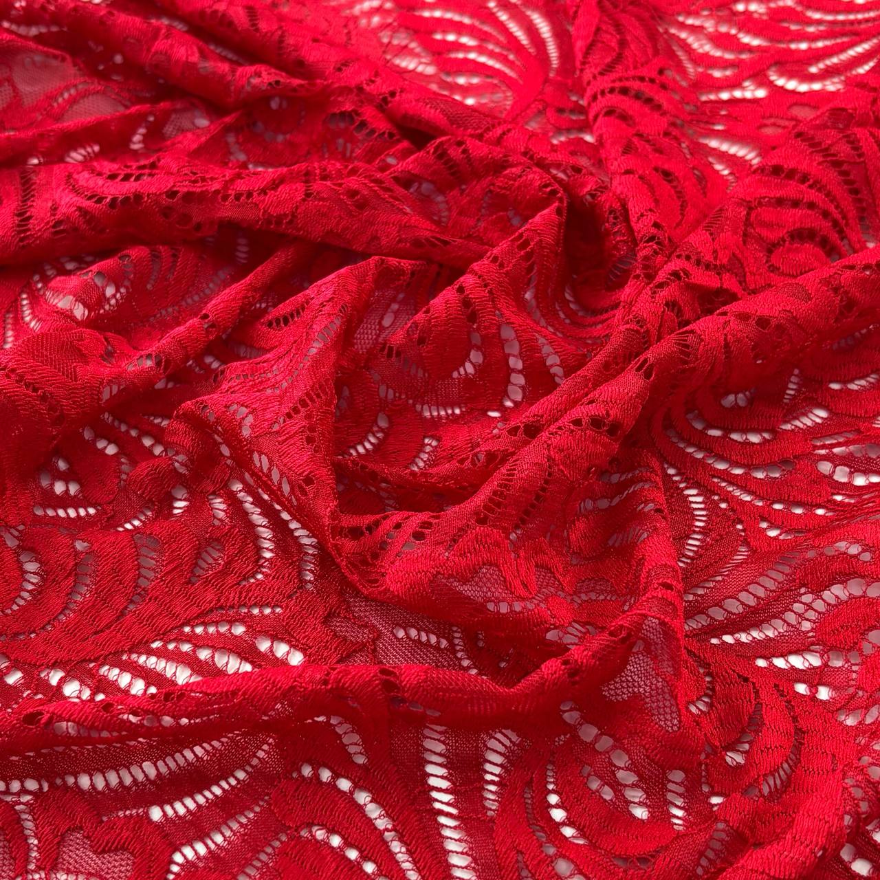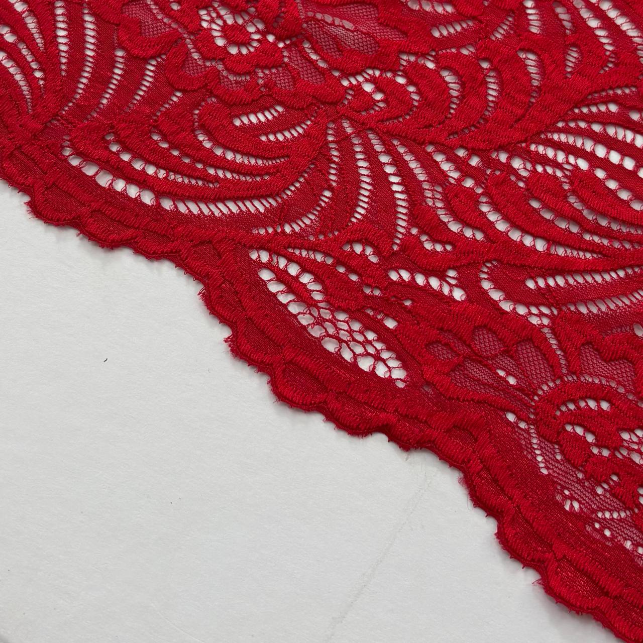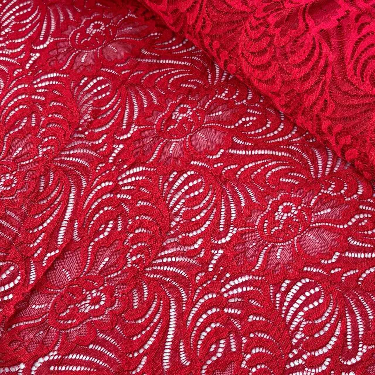 בד תחרה עלים פרחים אדום חזק