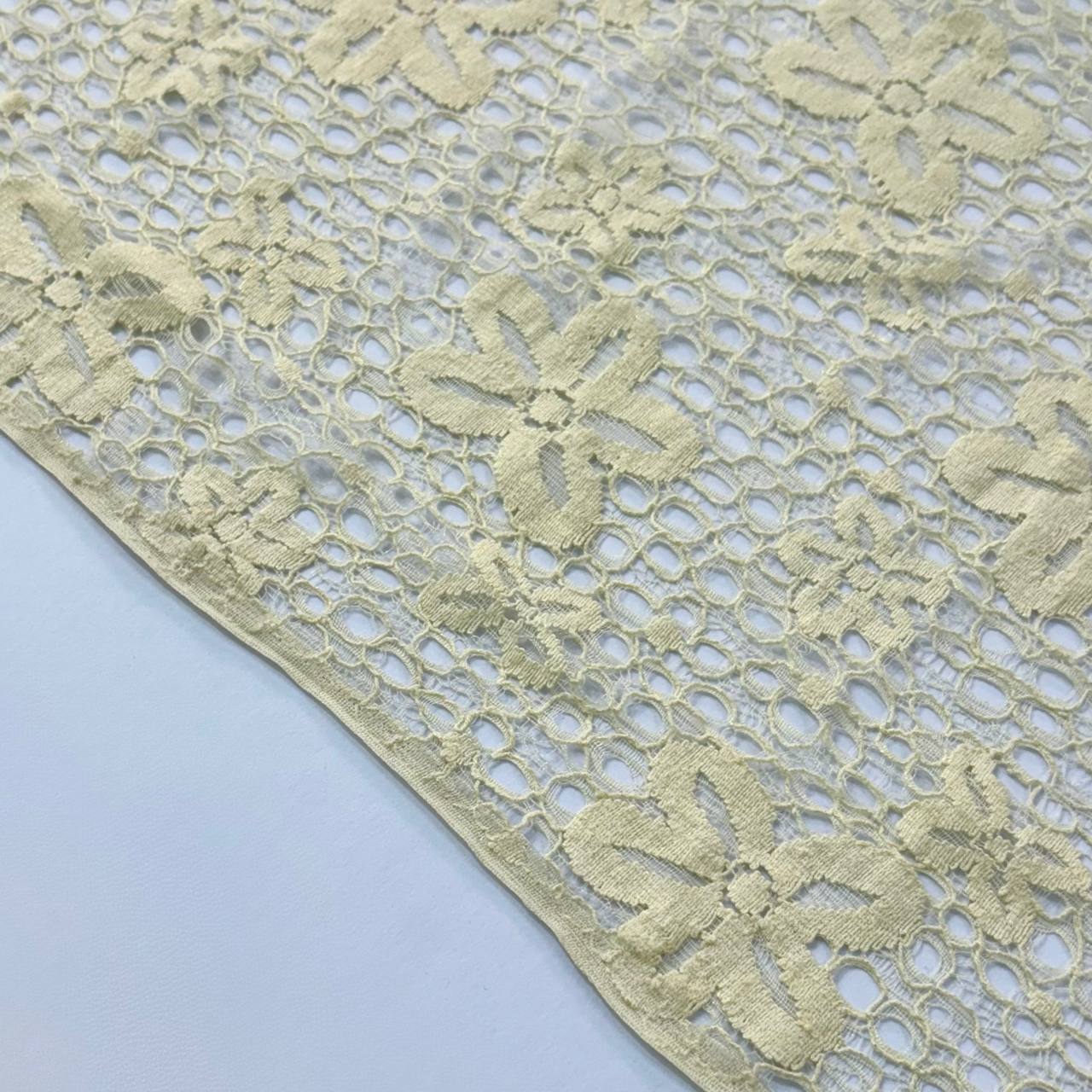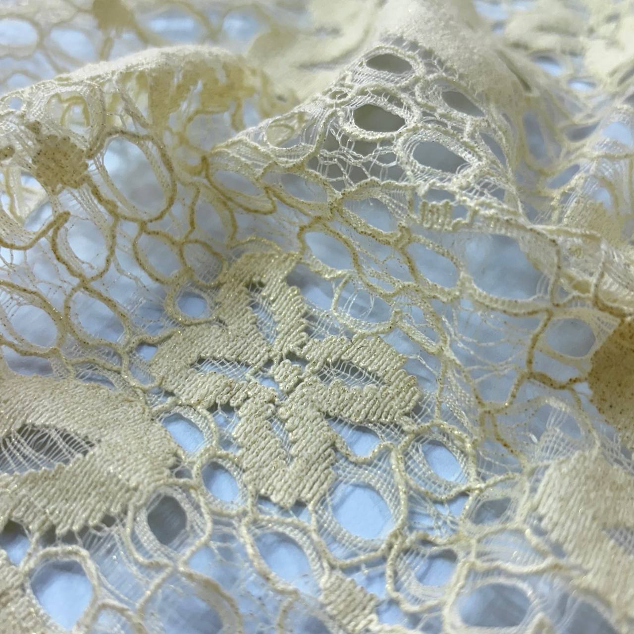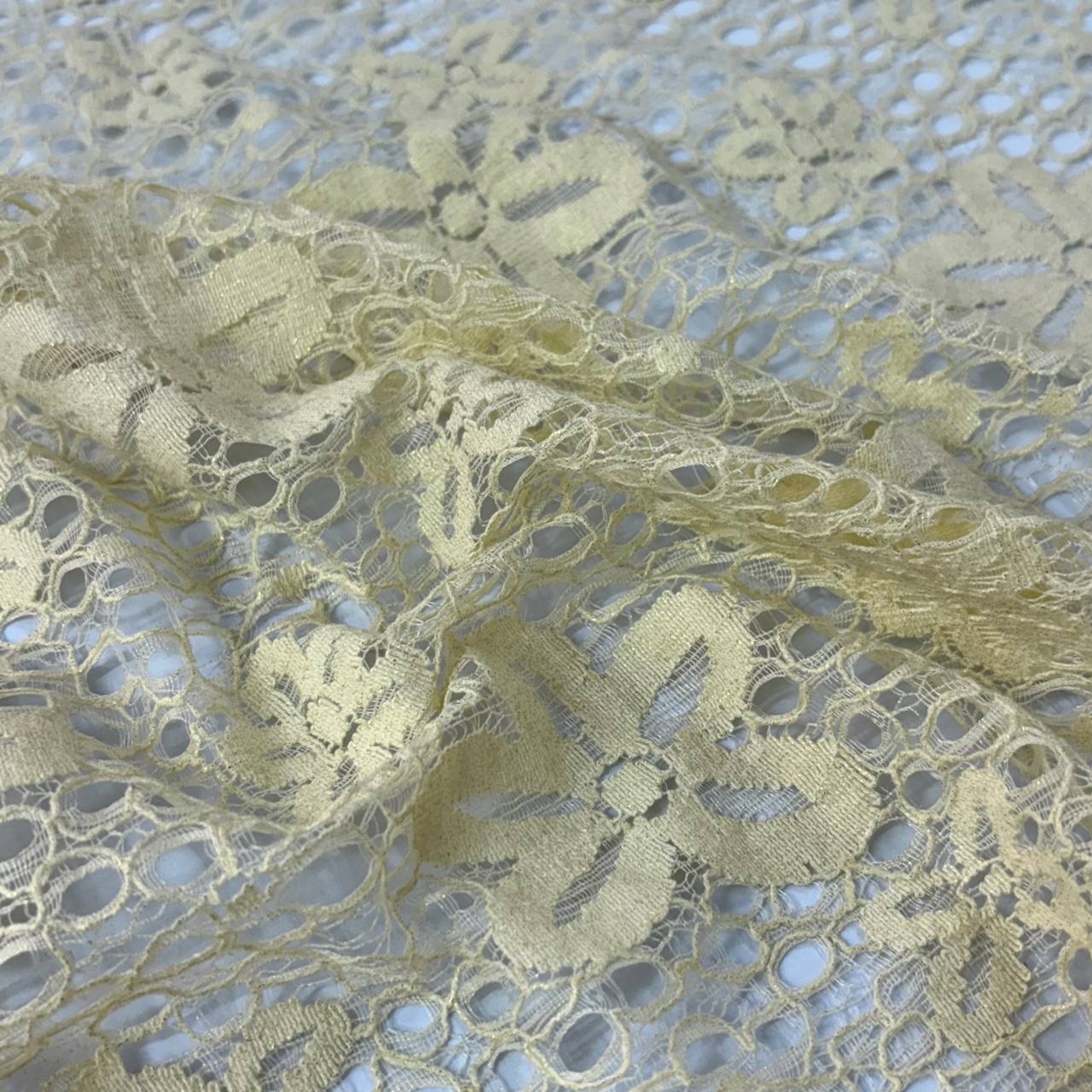 דוגמא פרחים ועיגולים בצבע צהוב בהיר עם לורקס זהב עדין במיוחד