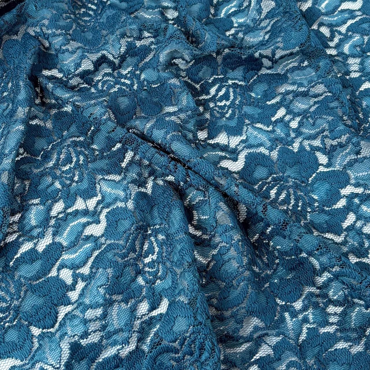 דוגמא פרחים צפופים בצבע כחול פטרול