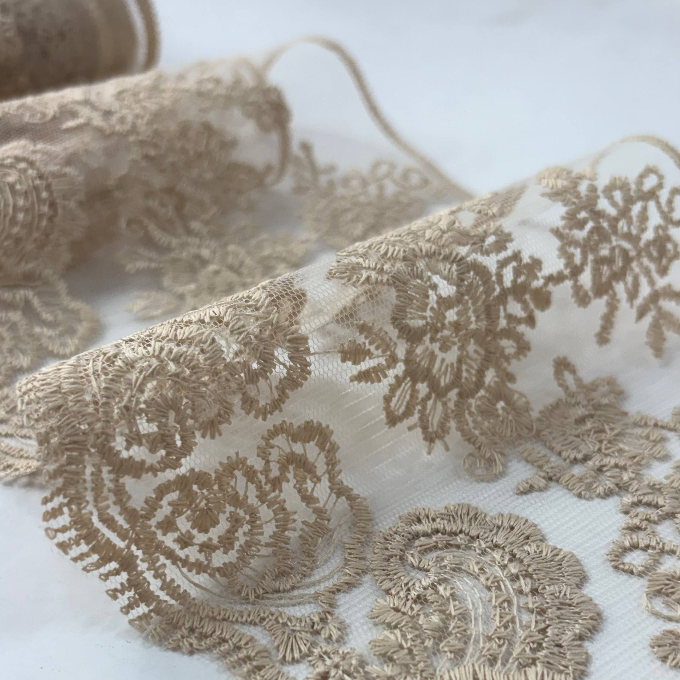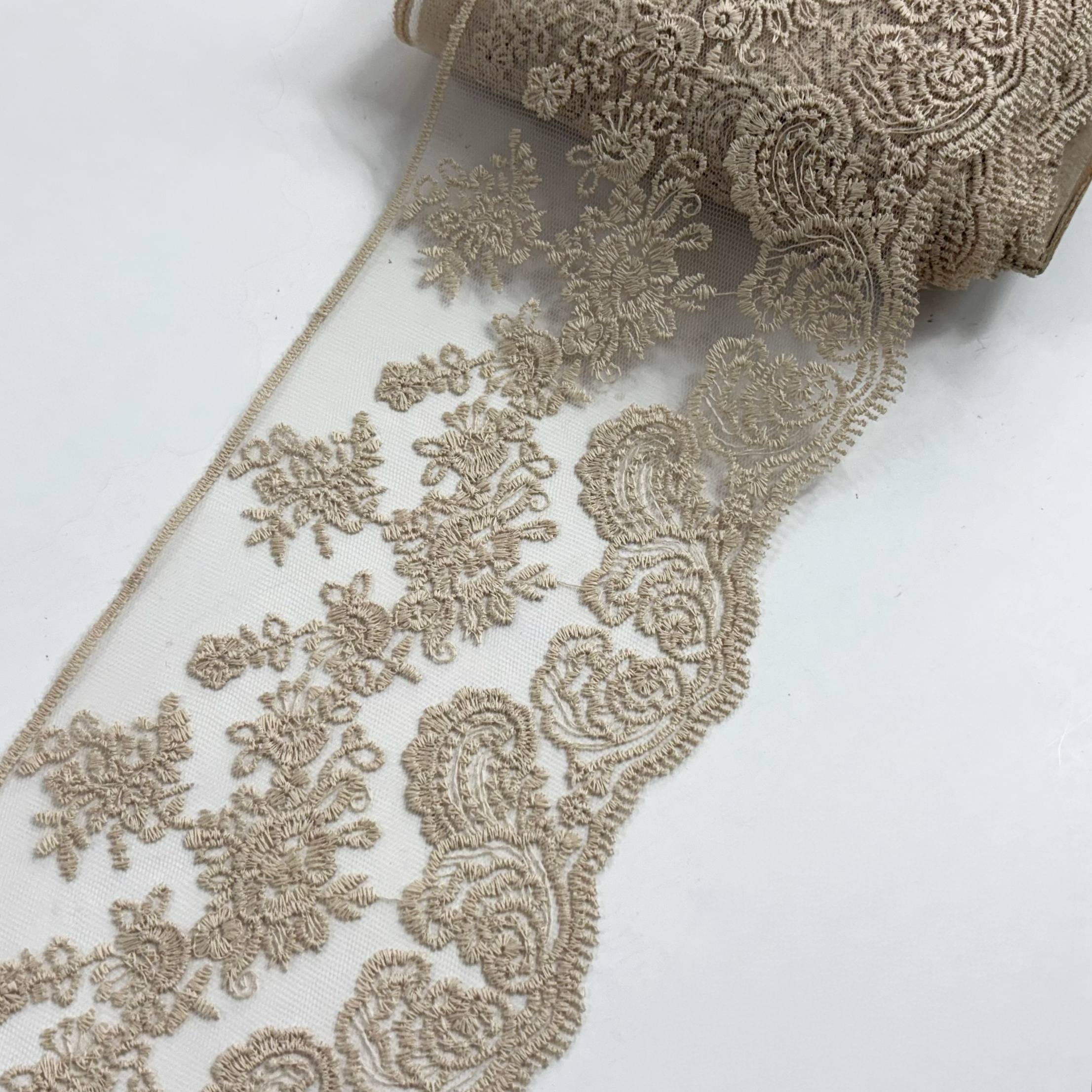 סרט עדין, רחב, דוגמת פרחים רקומים עד טול