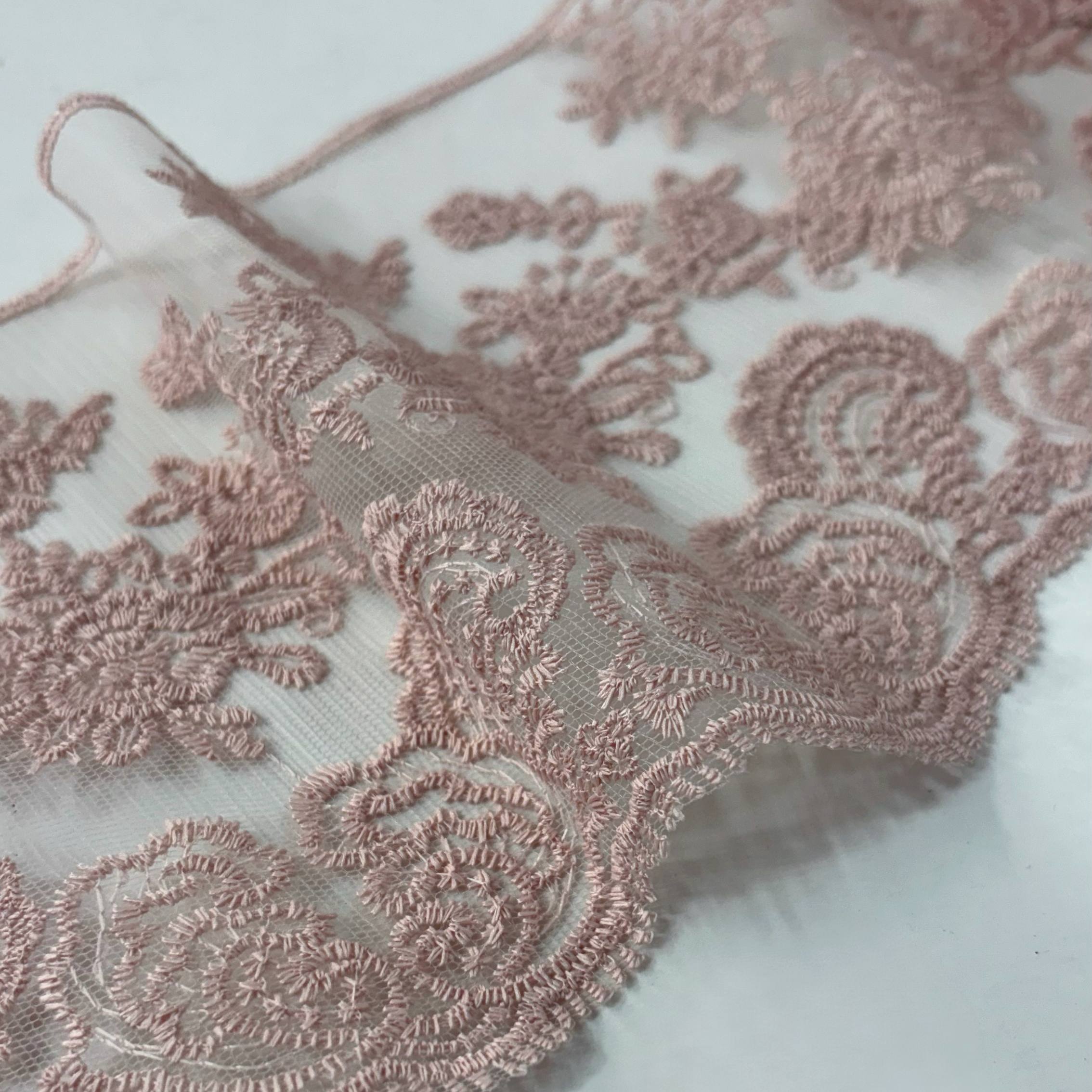 סרט תחרה רקומה ורוד עתיק בהיר