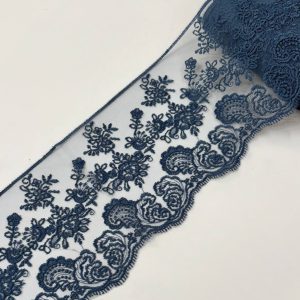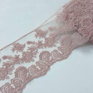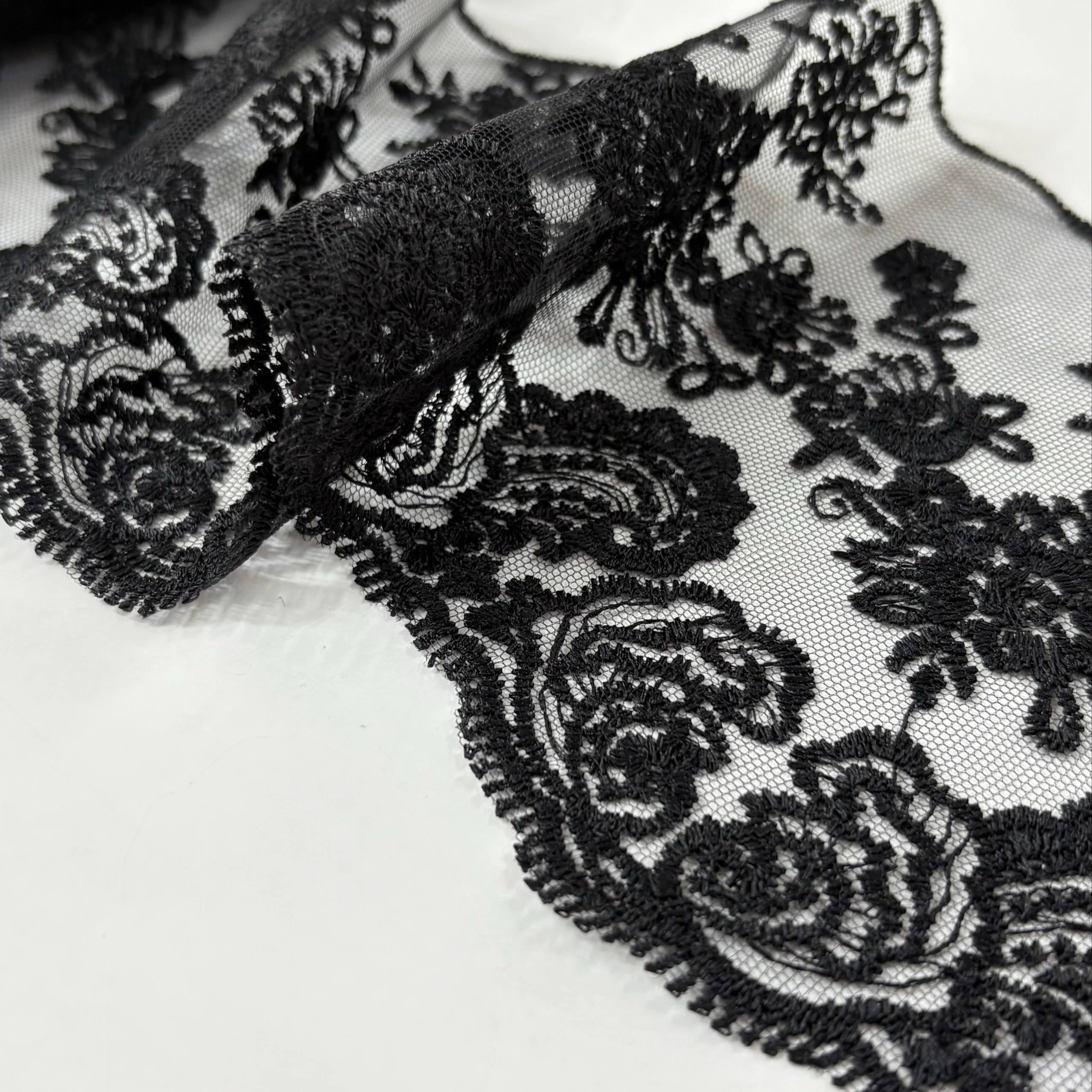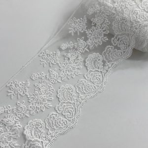 סרט עדין, רחב, דוגמת פרחים רקומים עד טול